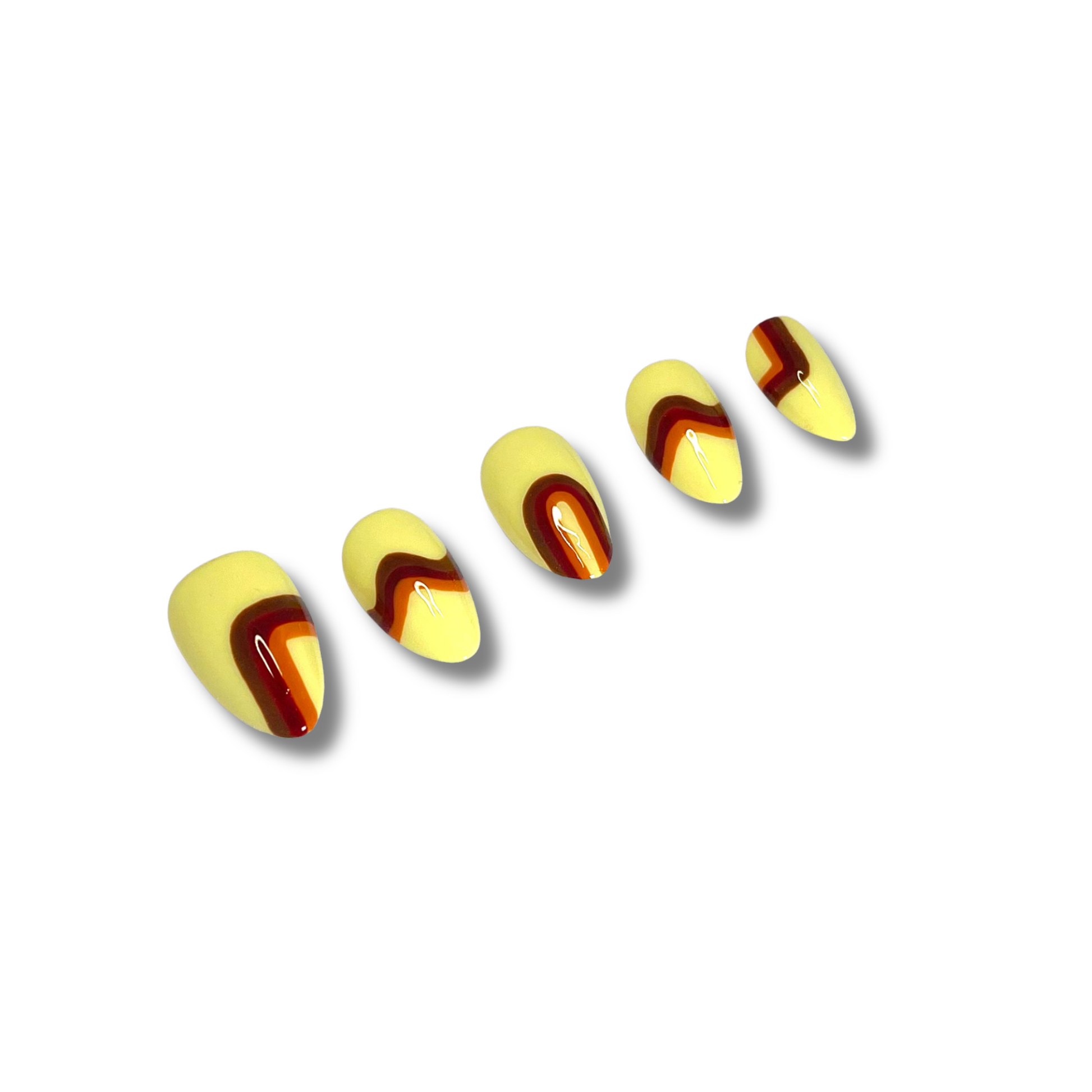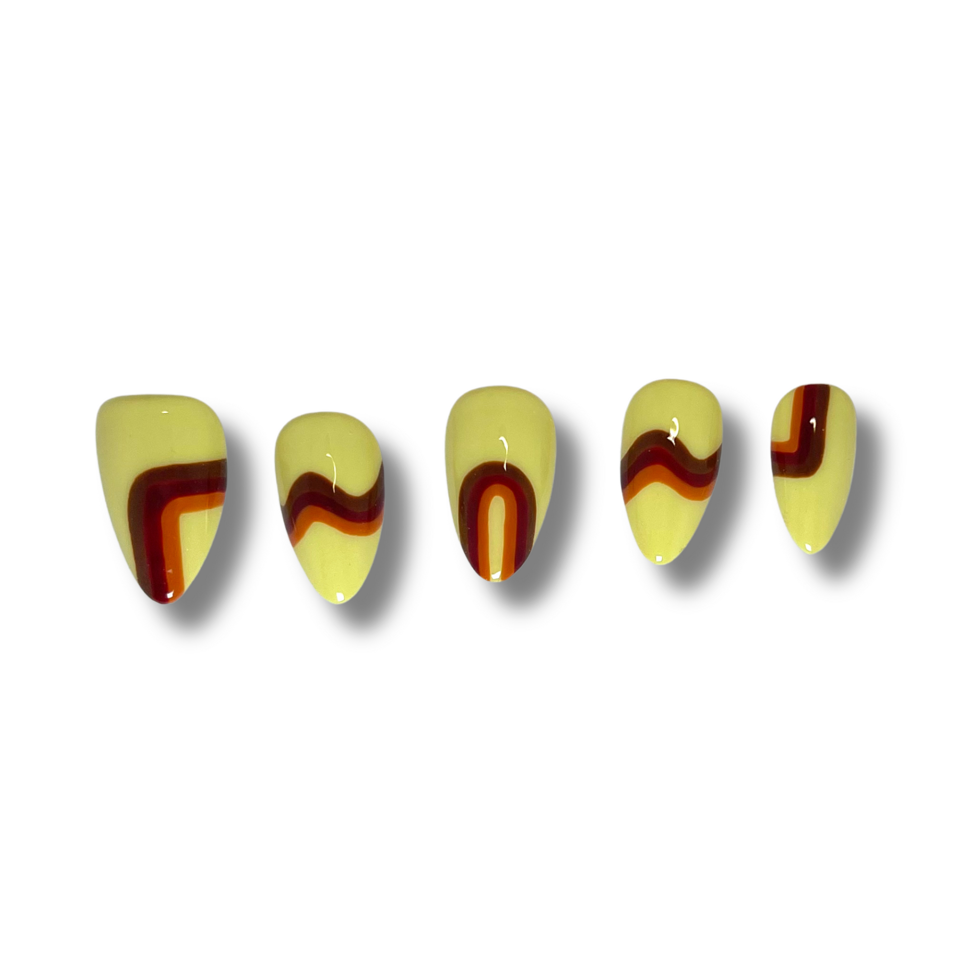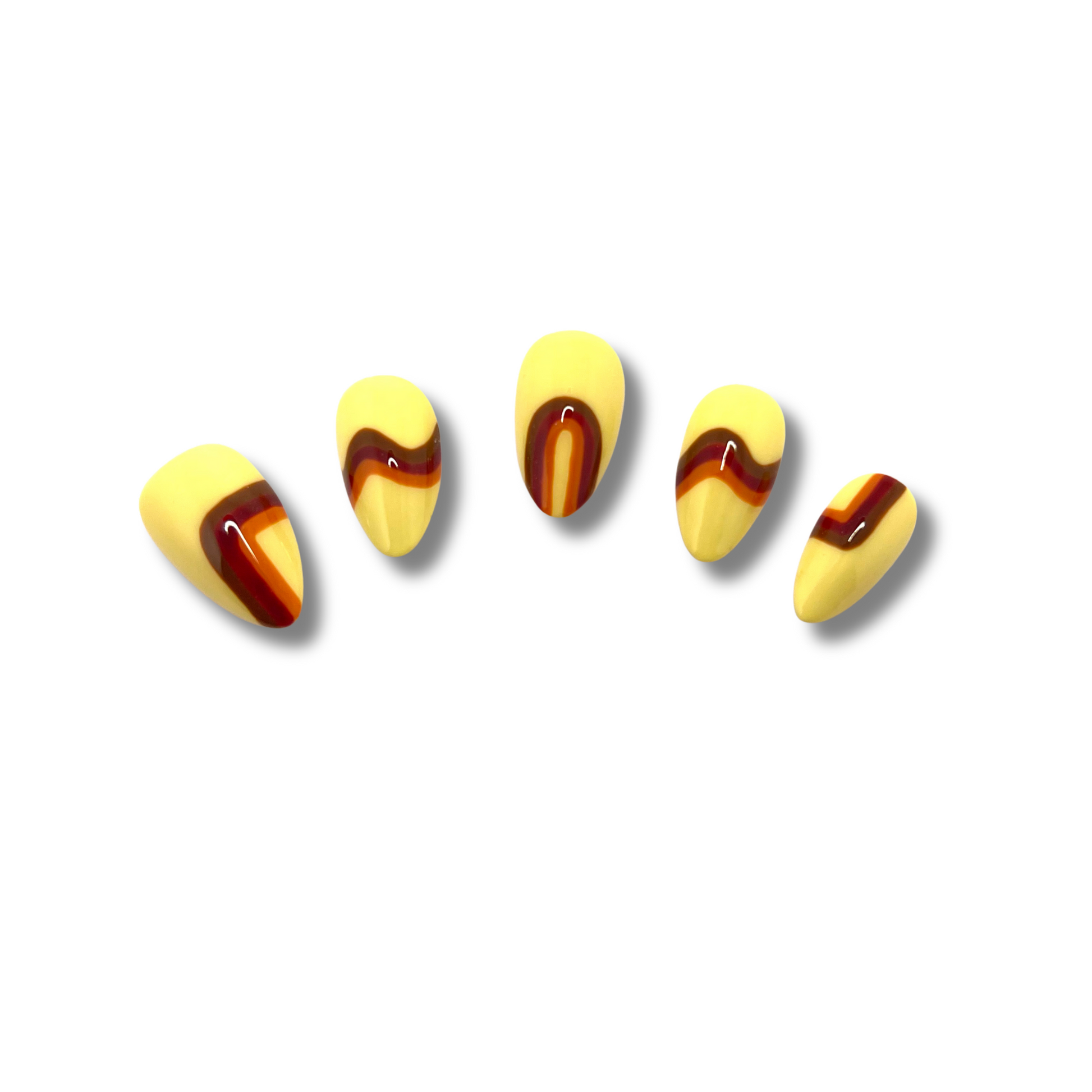 Earthy tones meet clean lines in this retro-inspired set. With muted colors and simple striped accents, these nails bring a chic ‘70s vibe that’s perfect for anyone who loves subtle, stylish detail.