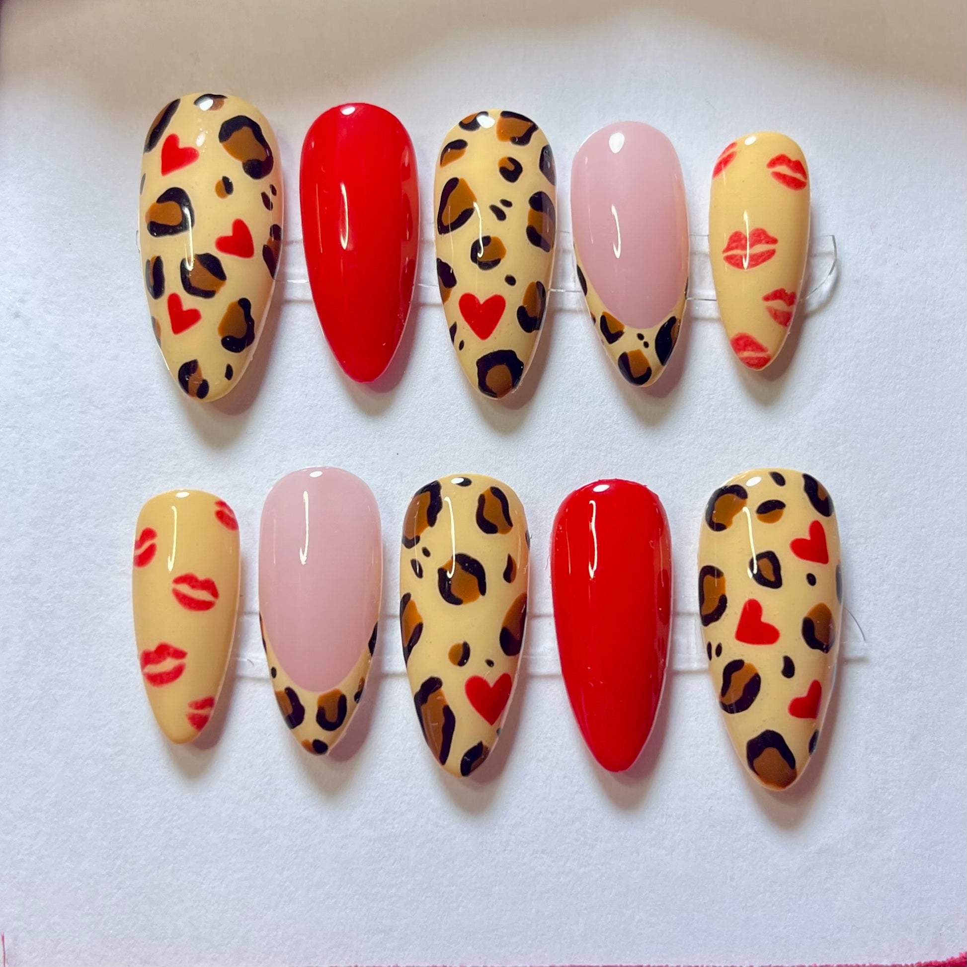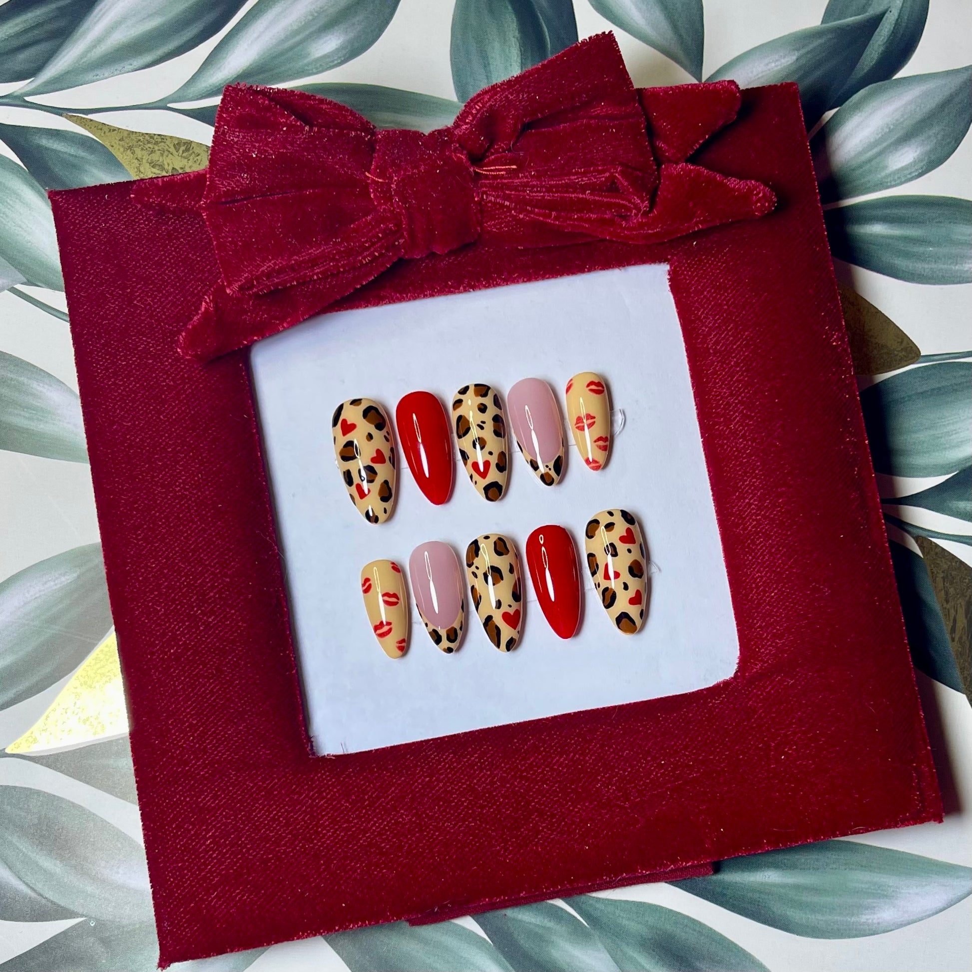 The Leopard Heart Nails combine fierce leopard print with sweet heart accents for the ultimate bad-girl-meets-romance moment. This set is made for statement lovers who like a little sass with their sweetness—classic pin-up energy with a modern edge.